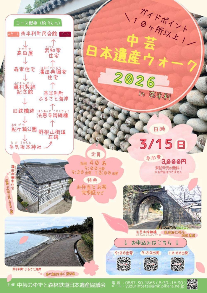 ウォーキングイベント「中芸日本遺産ウォーク2026in奈半利」が3月15日(日)に開催されます♪